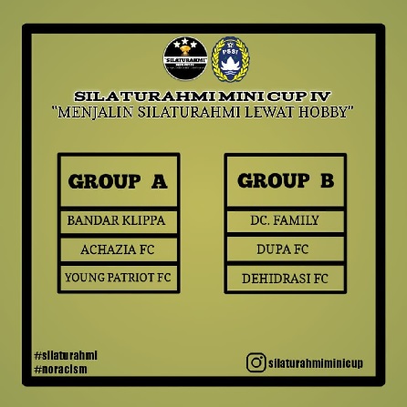 AnakBola – Mengusung tagline “Menjalin Silaturahmi Lewat Hobby”, Silaturahmi Mini Cup IV akan bergulir akhir pekan ini. Sesuai jadwal kick off dilaksanakan pada Minggu (12/12) di Lapangan Pasar II, Bandar Klippa, kecamatan Percut Sei Tuan, Deli Serdang.