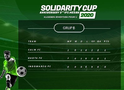 Dari hasil pertandingan di pekan pertama (13/9), tim asuhan pelatih Suwasman baru mengoleksi 1 poin. Meski memimpin Grup B namun posisi Calm FC sesungguhnya belum aman, pasalnya Gaota FC yang berada di posisi kedua juga mengoleksi poin sama.