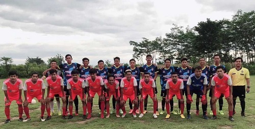 Pemain Putra Lengkong (depan) dan Persetab Patianrowo berfoto bersama sebelum kick off.