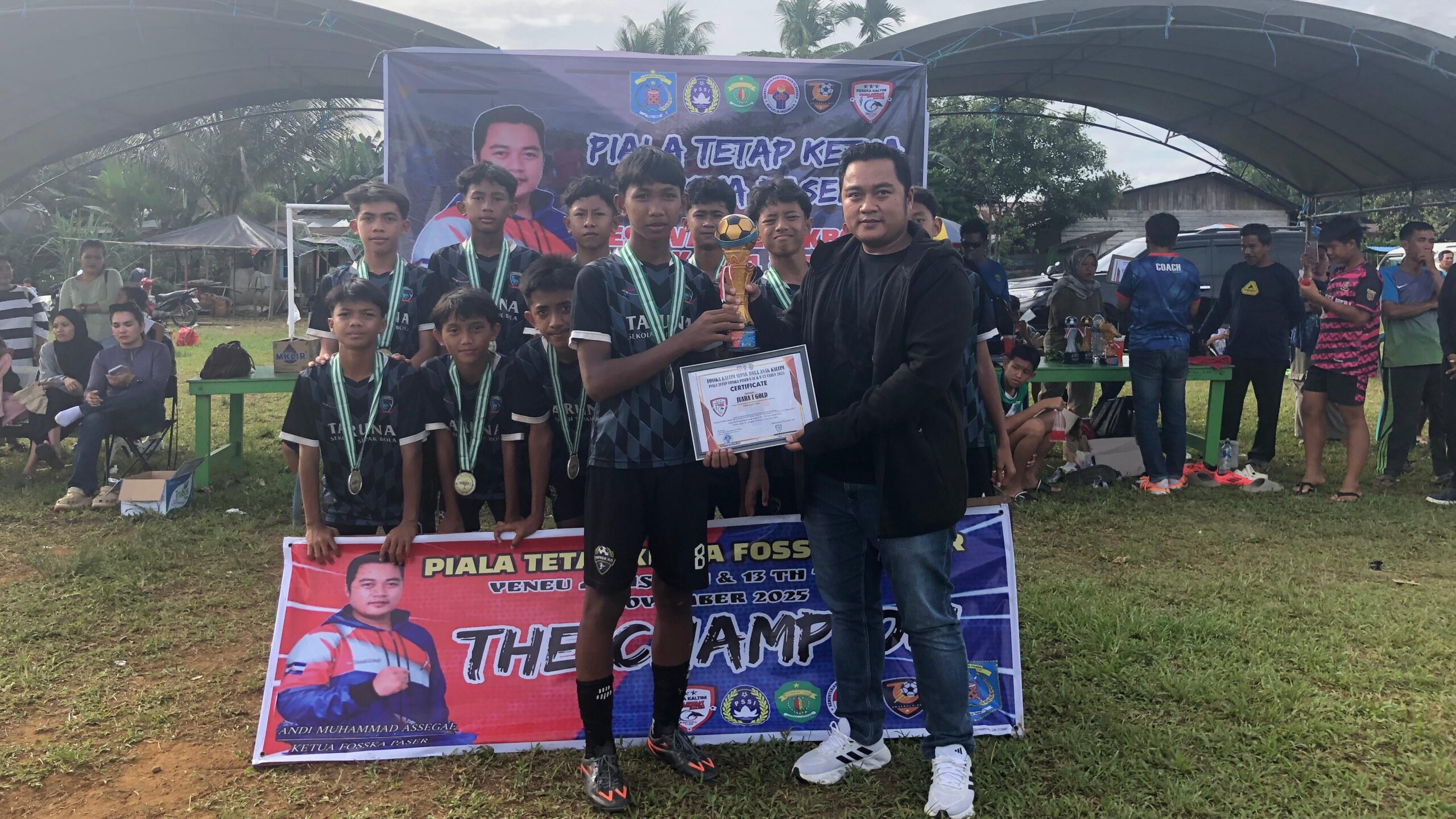 AnakBola — Puncak gelaran Festival Sepak Bola Anak Paser berlangsung meriah di Lapangan Andi’s Semuntai, Minggu (9/11). Sehari sebelumnya, acara ini dibuka langsung oleh Andi Ahmad dan menjadi bagian dari Piala Tetap Ketua FOSSKA Paser U-11 dan U-13, sekaligus pembagian bola untuk mendukung percepatan pembangunan sepak bola desa dan kelurahan.